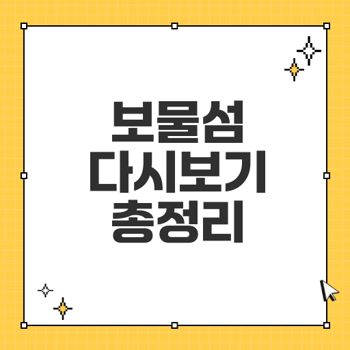 위의 방법들을 통해 언제든지 보물섬을 다시 볼 수 있습니다. 놓쳤던 감동의 순간을 다시 경험해 보세요!